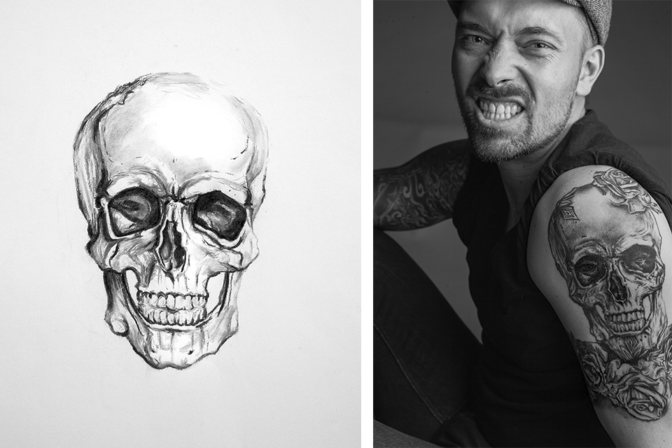 Tattoo Auftrag „Skull“ 2016, Michael, Mohan Gurung Tattookünstler, Tattoo Auftrag Kategorie: Kohlezeichnung, Tattoo Auftrag